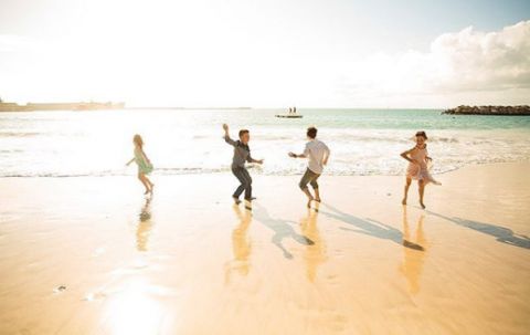 with ocean views from which to watch the sunset, jumping pillow and playground.